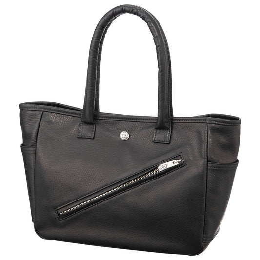 PC RIDERS LEATHER TOTE BAG M W/SILVER ZIPPER
