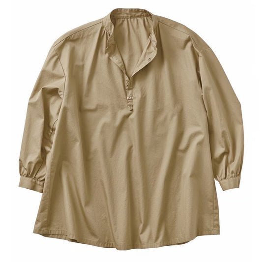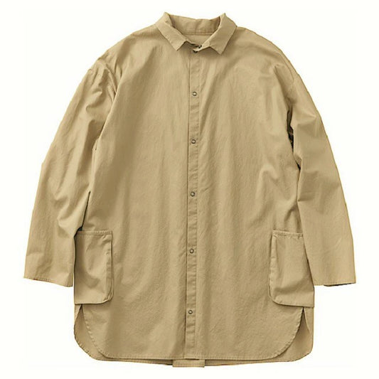 GABARDINE STAND COLLAR LONG SMOCK SHIRT