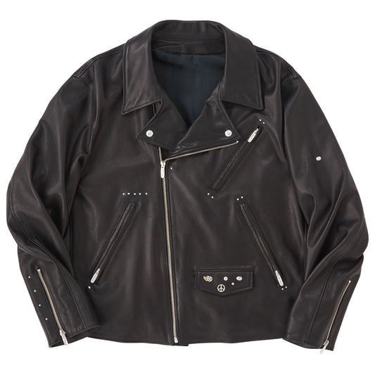 LEATHER RIDERS JACKETⅡ W/LOVE & PEACE SILVER (ENTREFINO)