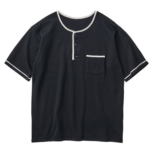 SUMMER COTTON HENLEY NECK T-SHIRT