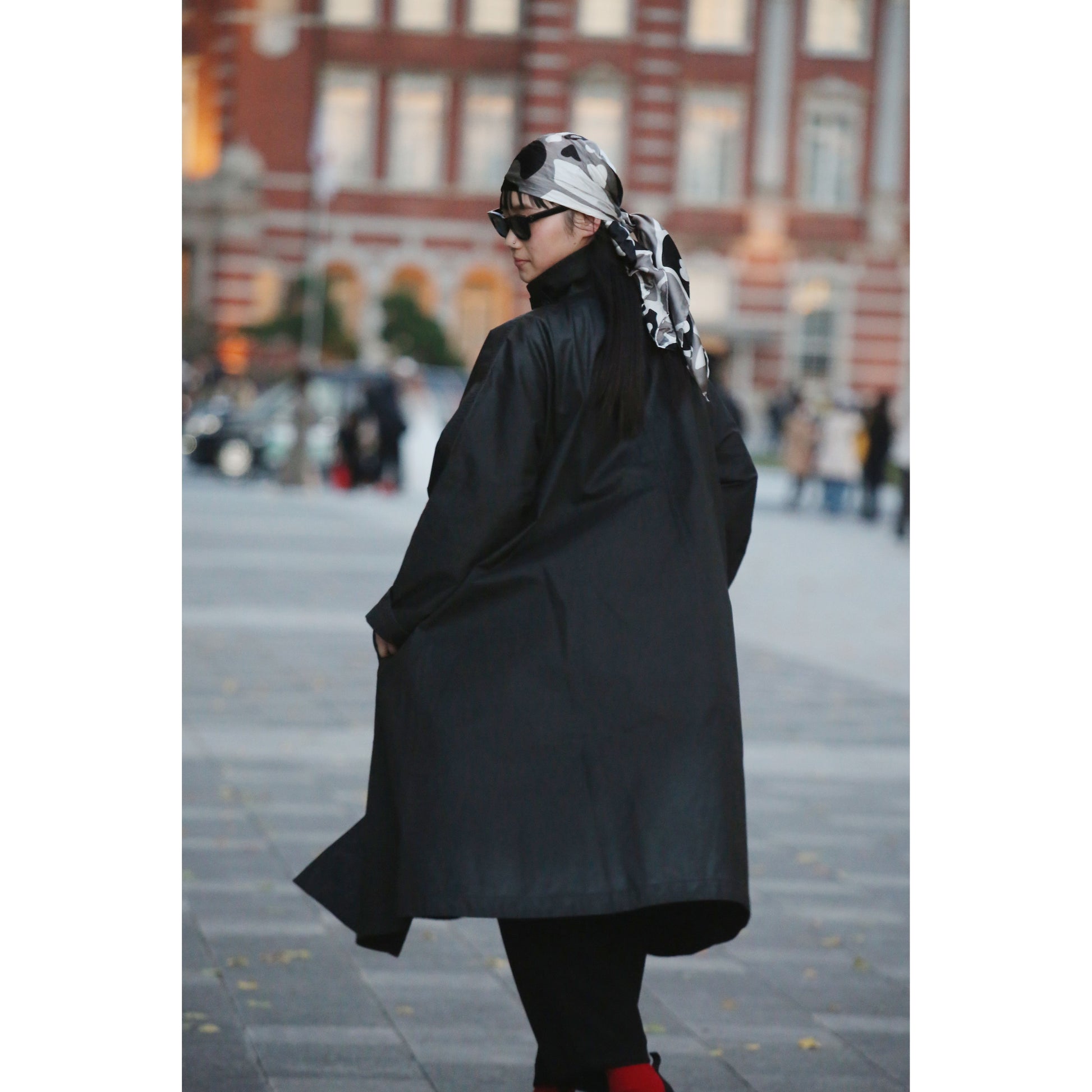 樹脂でコーティングしてオイルドコットンの風合いを再現したCINCINNATY。しっとりとした艶のある独特な生地は着込むほどにより魅力を放ちます。たっぷりとした身幅が優雅なシルエットを作りだすスイングコート。