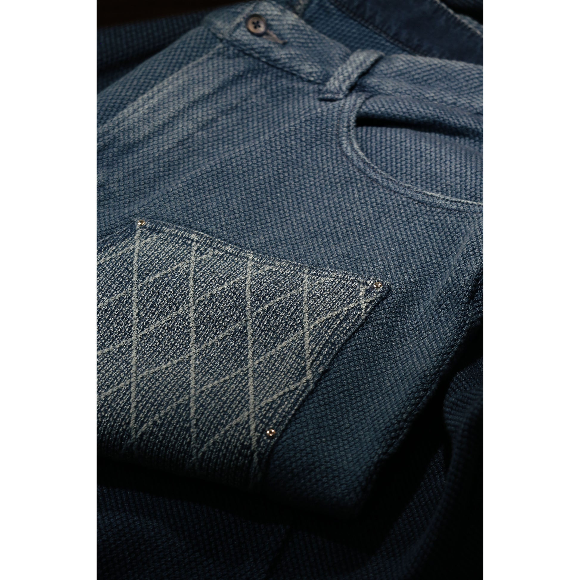 鮮やかに褪色したPC KENDOに、10個のシルバースタッズ。左右非対称のディティールに見る不完全な美しさ。