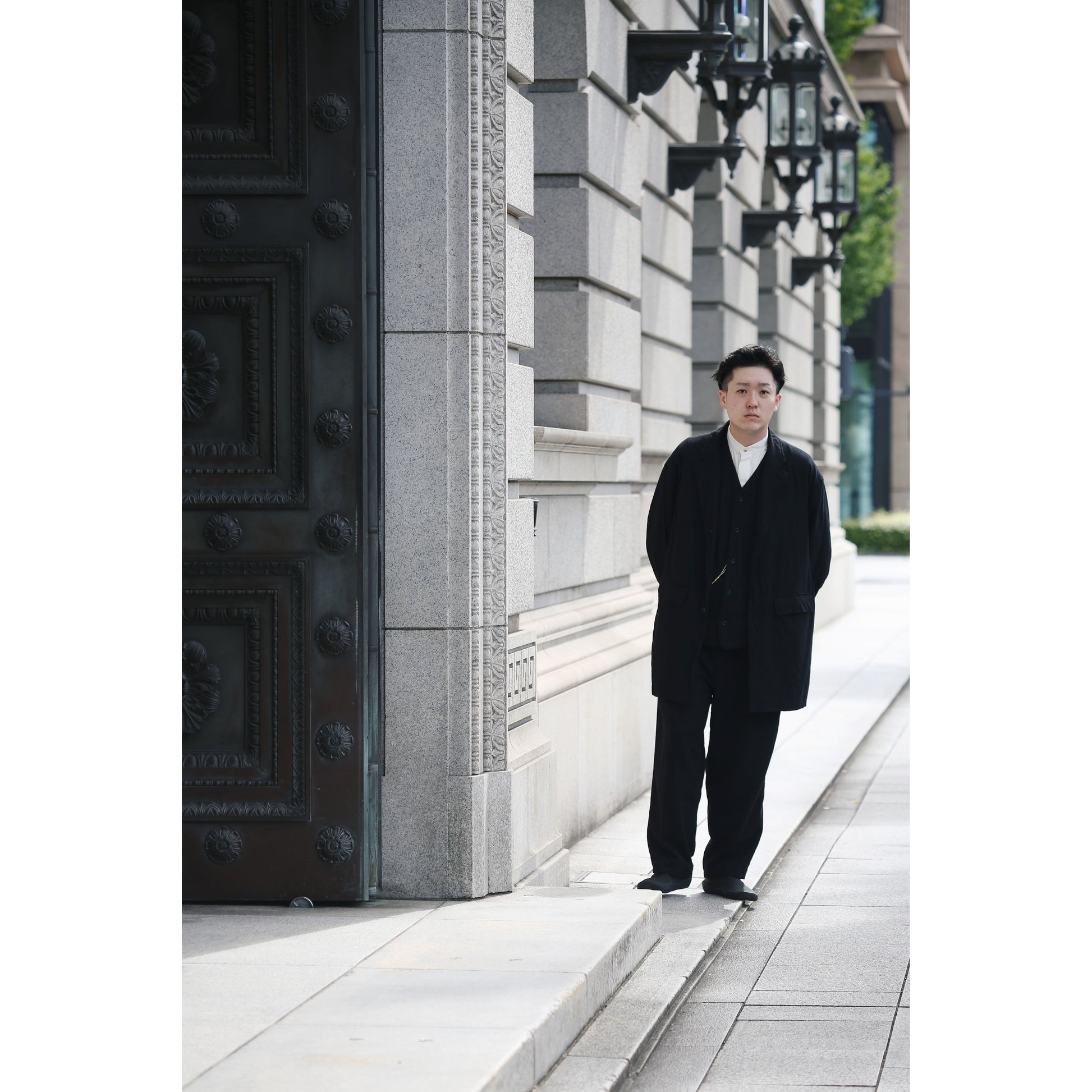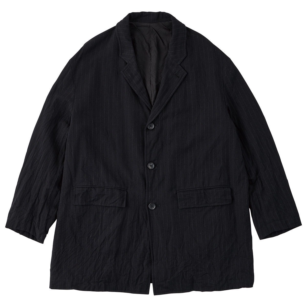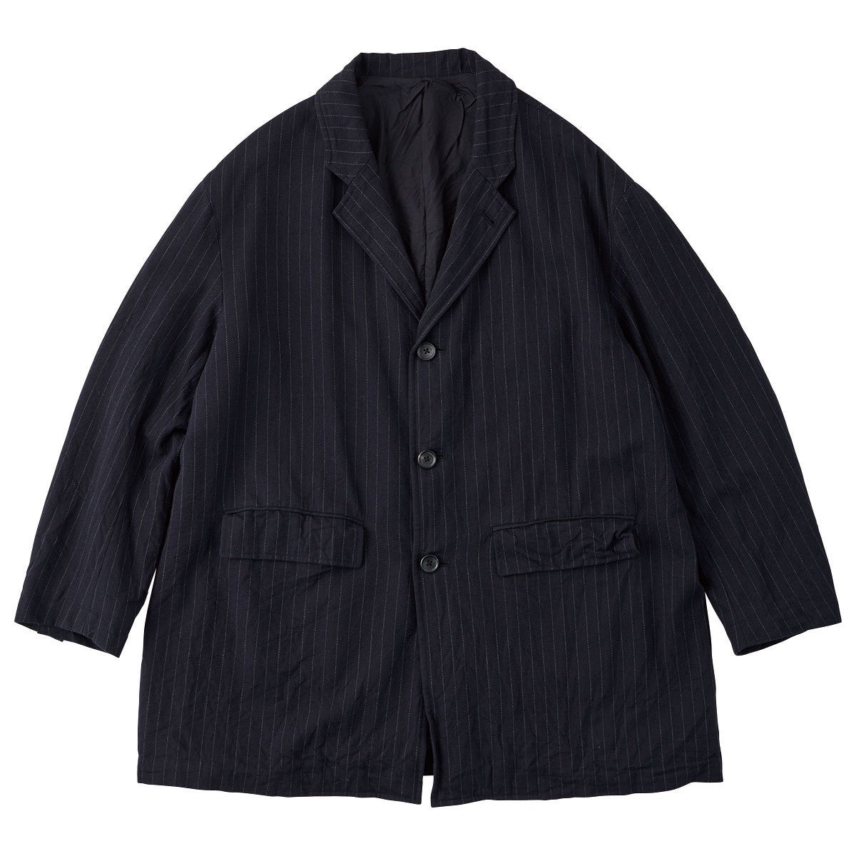 ウールとコットンで織り上げた風合い豊かな生地は、掠れたピンストライプが良い雰囲気です。BEBOP JACKETは大きなテーラードジャケット。ビバップが盛り上がった時代のジャズマンを彷彿させる迫力あるシルエット。
