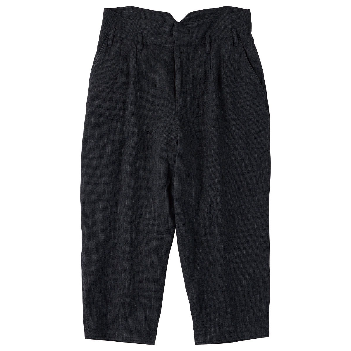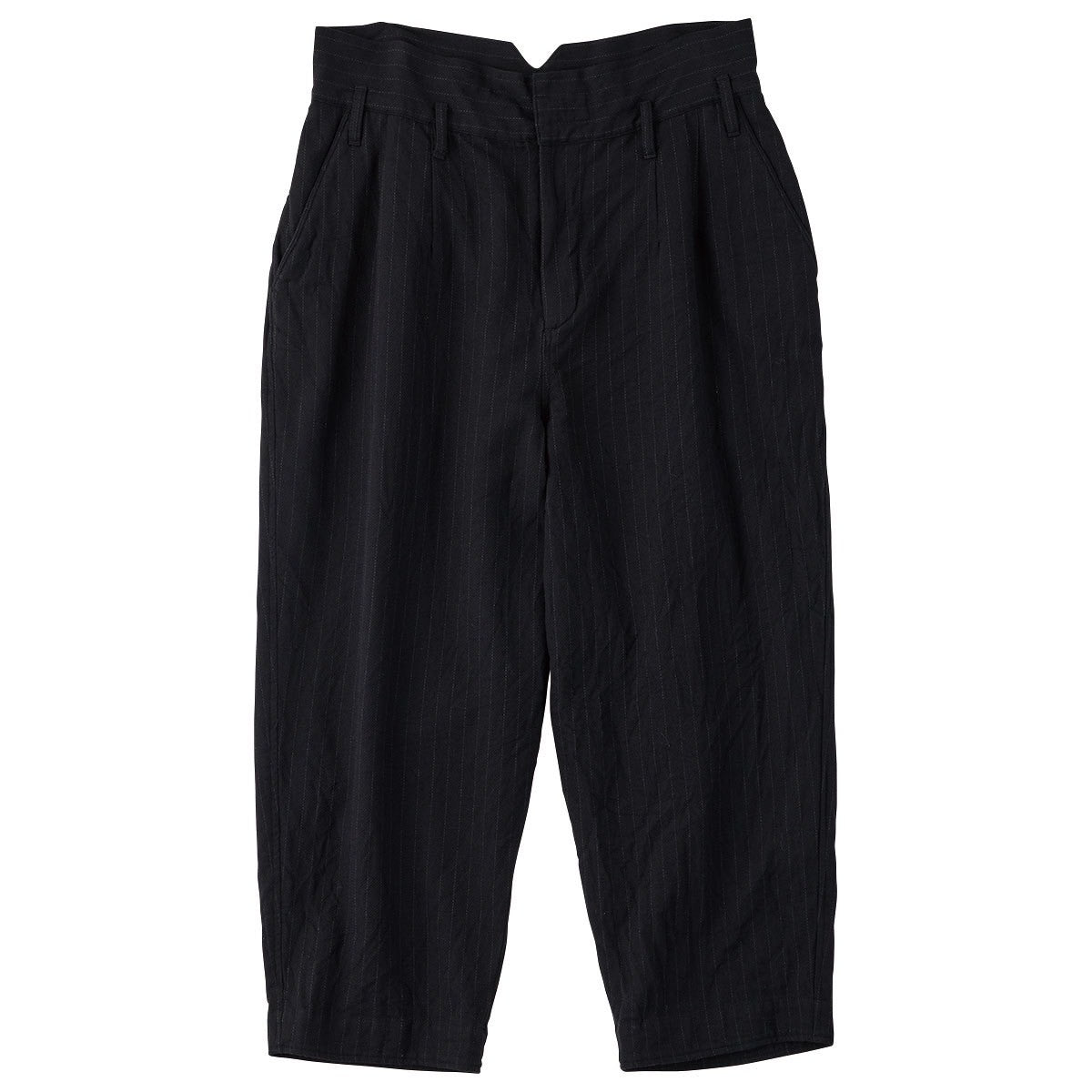 ウールとコットンで織り上げた風合い豊かな生地は、掠れたピンストライプが良い雰囲気です。ゆったりとしていてゆるやかにテーパード、余裕を感じる上品なシルエット。
